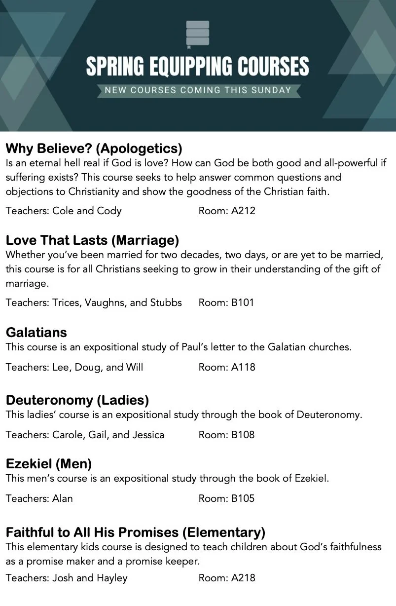 spring QUARTER EQUIPPING COURSES: March to May 2026